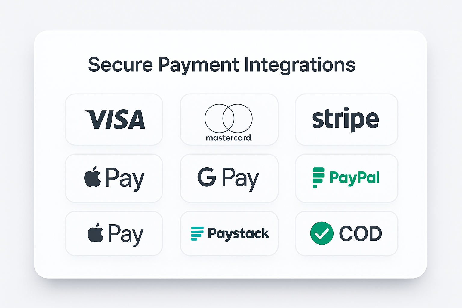 - Payments integration with Paystack, Flutterwave, PayPal, or Stripe.